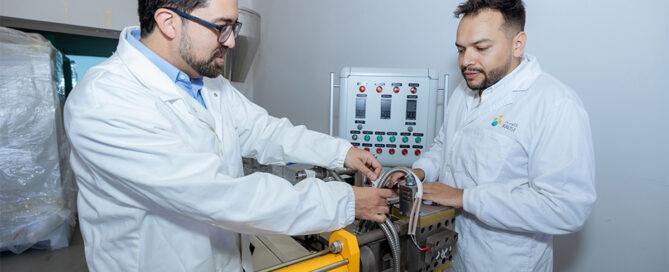 KAUST-start-up Polymeron maakt bioplastics van dadel- en pluimveemestafval Polymeron-medeoprichters Martin Ibarra (links) en Rodrigo Jimenez sleutelen aan hun nieuwe extruder. (Foto: KAUST) [...]