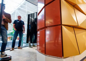 18 september 2024 – Op 18 september lanceerden AkzoNobel, Aldowa en Calosol een nieuwe, innovatieve ‘warmtewingevel’ waarmee gebouwen kunnen worden verwarmd én gekoeld, zonder in te hoeven leveren op de esthetische waarde van het pand. De technologie, die geïntegreerd is in de metalen gevelbekleding, maakt gebruik van de warmte van de zon. Wanneer de zon niet schijnt, wordt er warmte onttrokken aan de lucht. Door vloeistof door een buizencircuit achter de gevelcasette te leiden wordt het opgewarmd. Deze vloeistof wordt vervolgens direct gebruikt als bron voor de warmtepomp, of wordt tijdelijk opgeslagen in een buffer. Op deze manier kan de gevel zorgen voor zowel verwarming als verkoeling van gebouwen zorgen. In tegenstelling tot bij gebruik van een lucht-water warmtepomp met een buitenunit, komt bij de warmtewingevel geen geluid vrij. Extra waardevol is dat de gevelpanelen kunnen worden ontwikkeld met een zeer grote mate van vormvrijheid; in iedere gewenste kleur, patroon en formaat. Hierdoor blijft volgens de Aldowa de ontwerpvrijheid van architecten gewaarborgd.