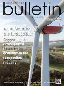 2024 11 januari – Het ACerS Bulletin van januari/februari 2024 behandelt keramiek en glas dat wordt gebruikt in technologieën voor hernieuwbare energie. Het coververhaal biedt een blik op het glas-tot-glas-terugwinningsproces dat door Carbon Rivers is ontwikkeld om glasvezels terug te winnen uit composieten aan het einde van hun levensduur, met name windturbinebladen.