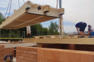21 mei 2025 – Plafonds van massief hout en klei combineren de sterke punten van beide materialen: houten balken dragen het gewicht, terwijl klei zorgt voor geluids- en brandwering. Bij Leipfinger-Bader, leverancier van energiezuinige en duurzame bouwsystemen, wordt een dragende balkenconstructie gestort met klei met een bulkdichtheid van 2,2 kg/dm³. Dankzij het nieuwe gietproces is de productie snel en voordelig, terwijl statische maatvoering volgens de regels van de houtbouw mogelijk blijft.